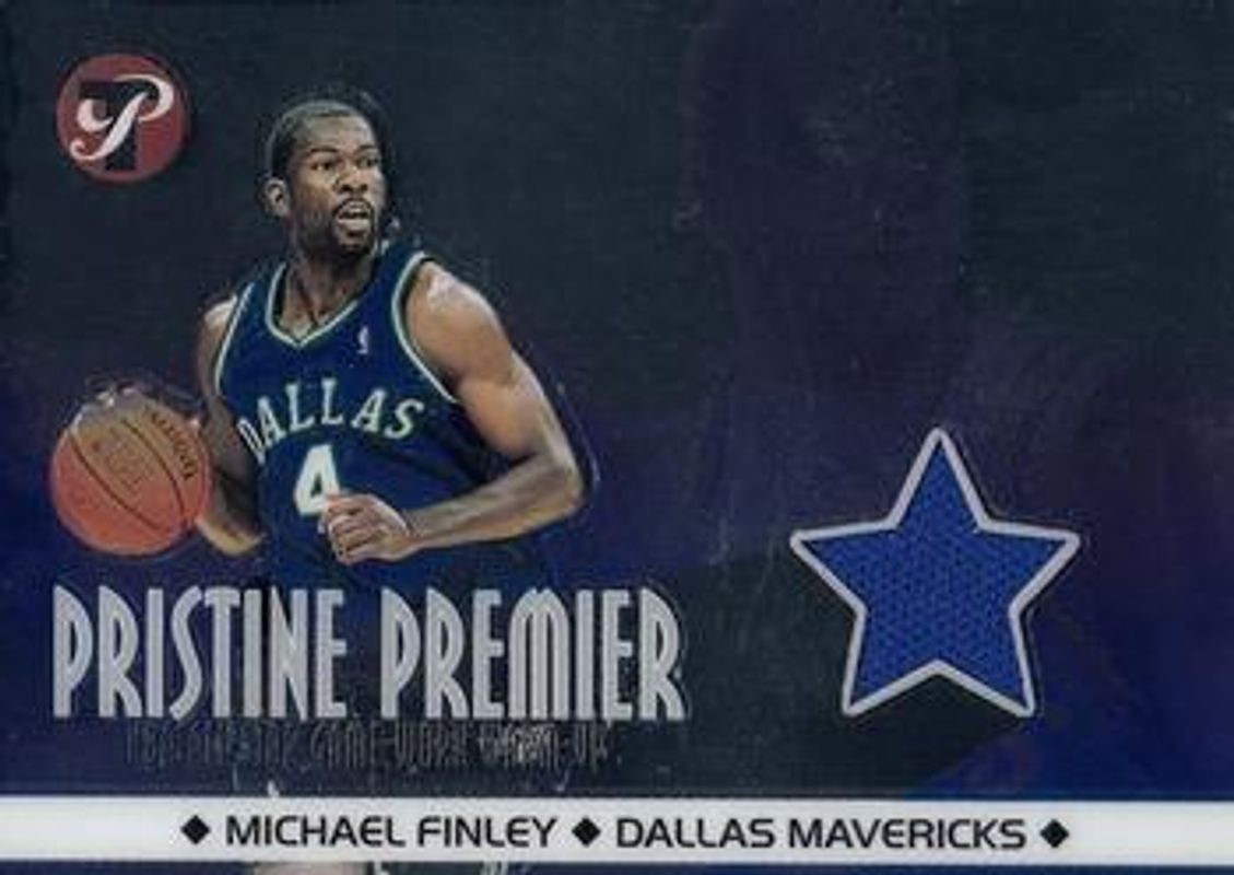 The Michael Finley 2001 Topps Pristine #PR-MF Premier card is 1 of 5 Michael Finley's card variations in the 2001 Topps Pristine set being tracked by Sports Card Investor, including Base, Refractor /50, Slice of a Star, and Sweat and Tears.