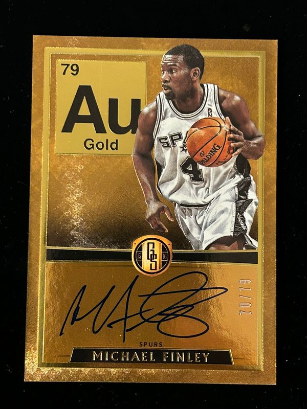 The Michael Finley 2015 Gold Standard #AU-MF AU Autographs /79 card is 1 of 2 Michael Finley's card variations in the 2015 Gold Standard set being tracked by Sports Card Investor, including 14K Autographs /40.