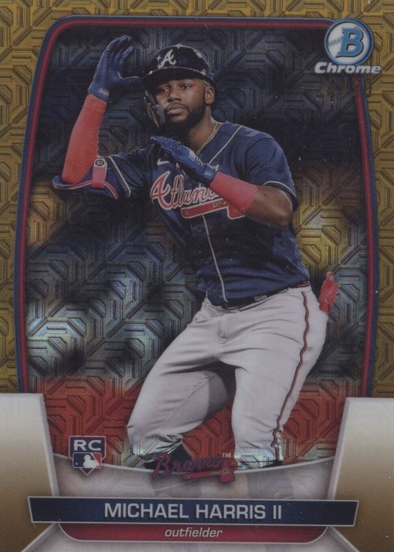 MICHAEL HARRIS II 2023 BOWMAN CHROME ROOKIE #76 MEGA BOX GOLD REFRACTOR 32/50
