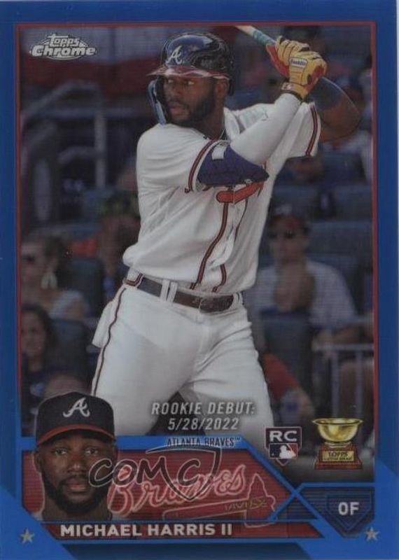 The Michael Harris II 2023 Topps Chrome Update #USC153 Rookie Debut - Blue Refractor /150 card in Raw condition has not changed in price in the last 30 days and was last sold for $7.00 .