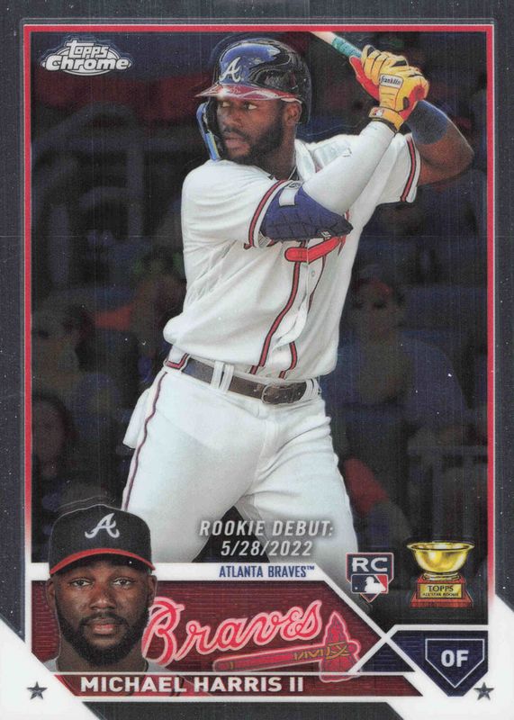 This card is 1 of 59 Michael Harris II's card variations in the 2023 Topps Chrome Update set being tracked by Sports Card Investor, including Rookie Debut - Negative Refractor, Rookie Debut - Pink Refractor, Rookie Debut - Prism Refractor, Rookie Debut - Refractor, and Rookie Debut - Sepia Refractor.