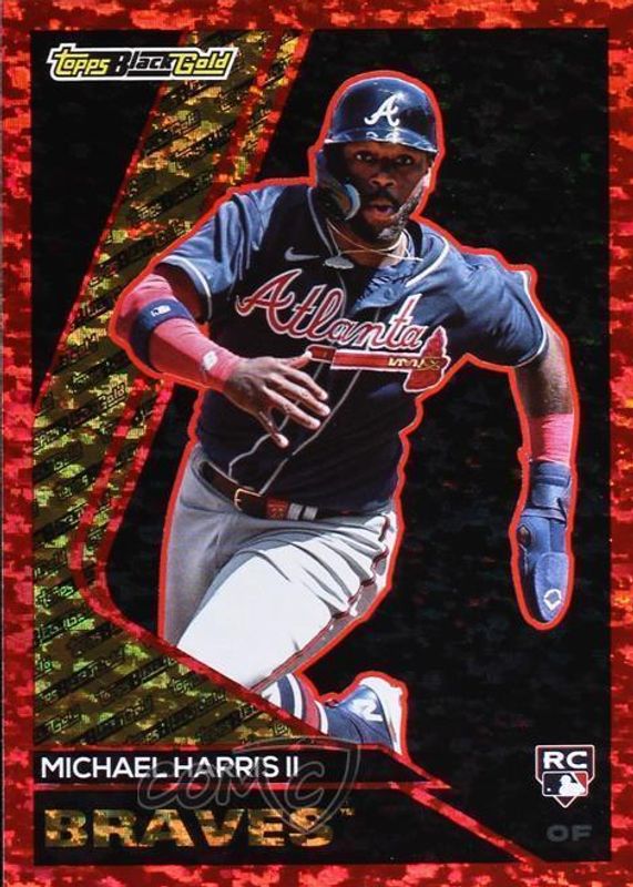 The Michael Harris II 2023 Topps Update #BG-6 Topps Black Gold - Red /10 Rookie card in Raw condition has not changed in price in the last 30 days and was last sold for $202.50 .