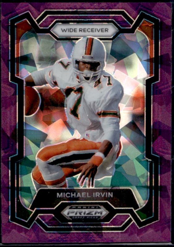 The Michael Irvin 2024 Prizm Draft Picks #33 Purple Ice /149 card is 1 of 59 Michael Irvin's card variations in the 2024 Prizm Draft Picks set being tracked by Sports Card Investor, including Base, Green, Purple Wave, Red Ice, and Ruby Wave.
