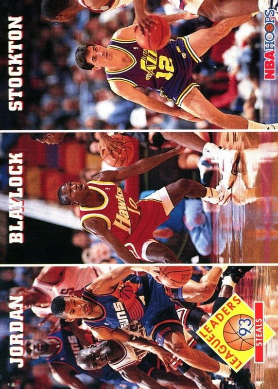 MICHAEL JORDAN, STOCKTON, BLAYLOCK 1993-94 NBA Hoops #289 League Leaders Steals