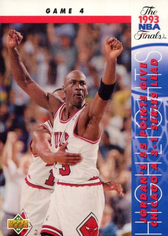The Michael Jordan 1993 Upper Deck #201 NBA Finals Highlights ("Game 4") card in Raw condition has moved down -$1.00 (-50.3%) in the last 30 days and was last sold for $0.99 .