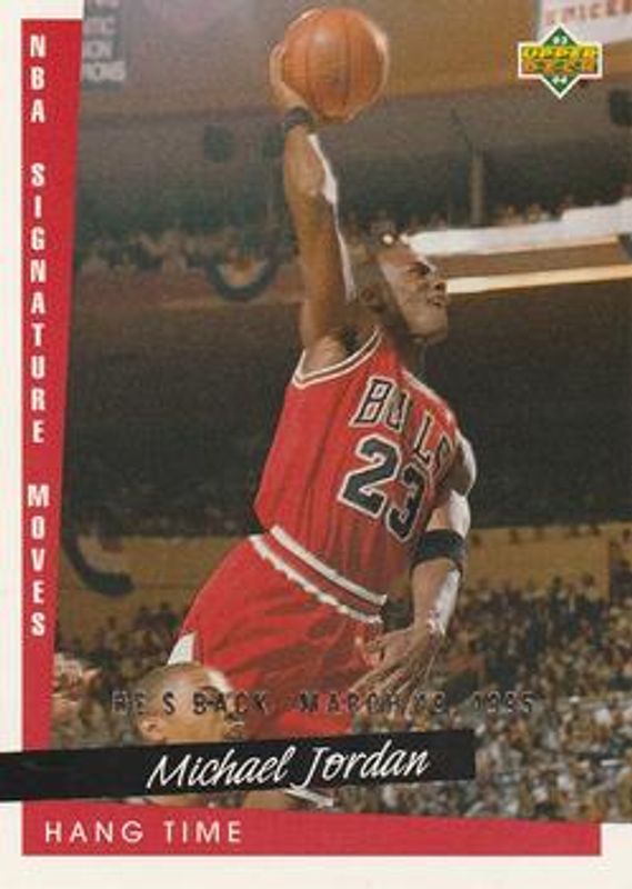 The Michael Jordan 1994 Upper Deck #237 Michael Jordan He's Back Reprints card is 1 of 28 Michael Jordan's card variations in the 1994 Upper Deck set being tracked by Sports Card Investor, including #359 Base, #37 Basketball Heroes: Michael Jordan, #38 Basketball Heroes: Michael Jordan, #39 Basketball Heroes: Michael Jordan, and #40 Basketball Heroes: Michael Jordan.