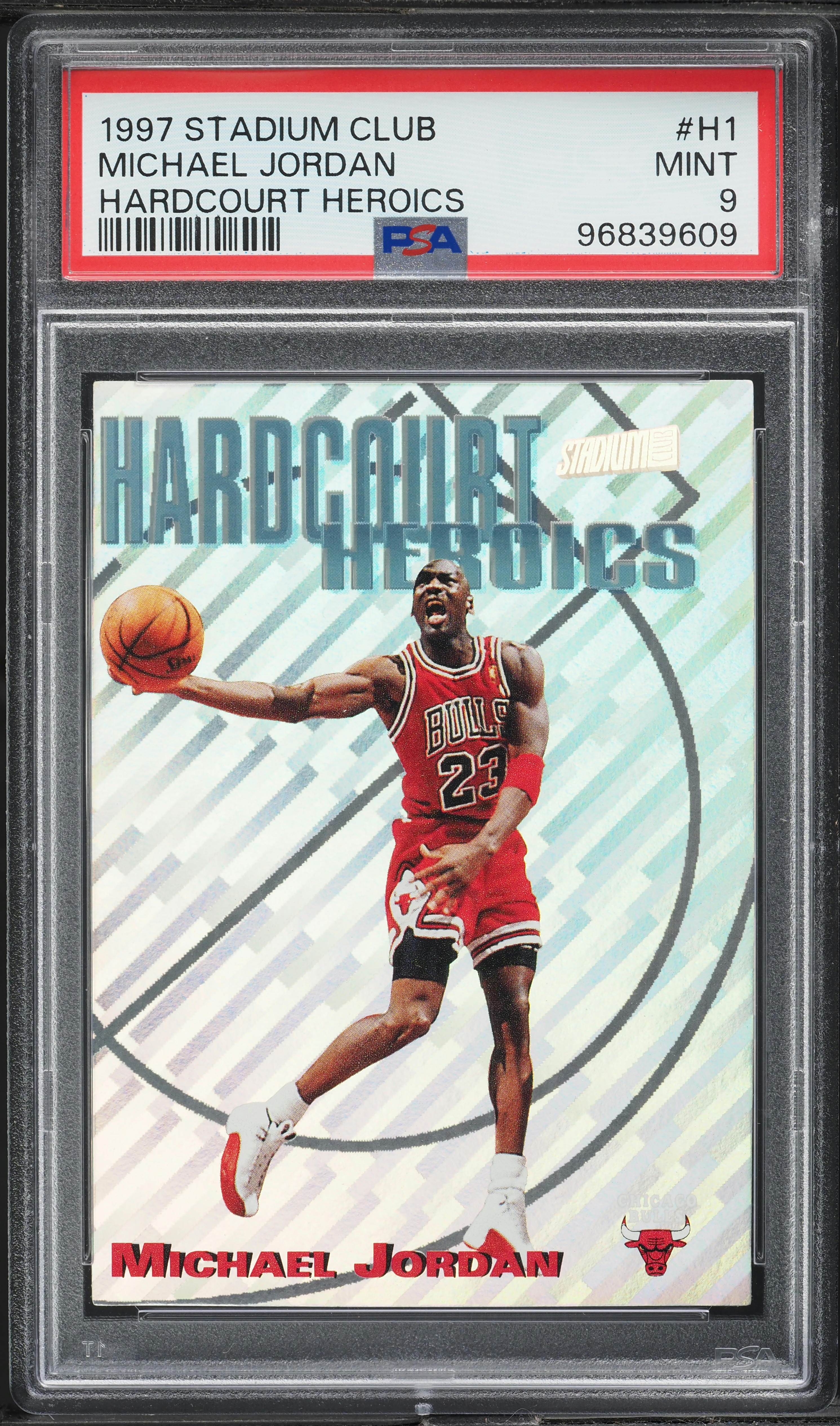 The Michael Jordan 1997 Stadium Club #H1 Hardcourt Heroics card in Raw condition has moved down -$1.50 (-1.7%) in the last 30 days and was last sold for $85.00 .
