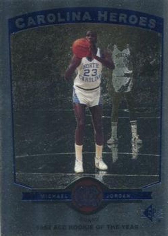The Michael Jordan 1998 SP Top Prospects #H4 Carolina Heroes card is 1 of 28 Michael Jordan's card variations in the 1998 SP Top Prospects set being tracked by Sports Card Investor, including #H1 Carolina Heroes, #H2 Carolina Heroes, #H3 Carolina Heroes, #J12 Phi Beta Jordan, and #J13 Phi Beta Jordan.