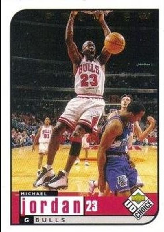 The Michael Jordan 1998 Upper Deck Choice Preview #23 Base card is 1 of 17 Michael Jordan's card variations in the 1998 Upper Deck Choice Preview set being tracked by Sports Card Investor, including #1 Michael Jordan NBA Finals Shots, #10 Michael Jordan NBA Finals Shots, #2 Michael Jordan NBA Finals Shots, #3 Michael Jordan NBA Finals Shots, and #4 Michael Jordan NBA Finals Shots.