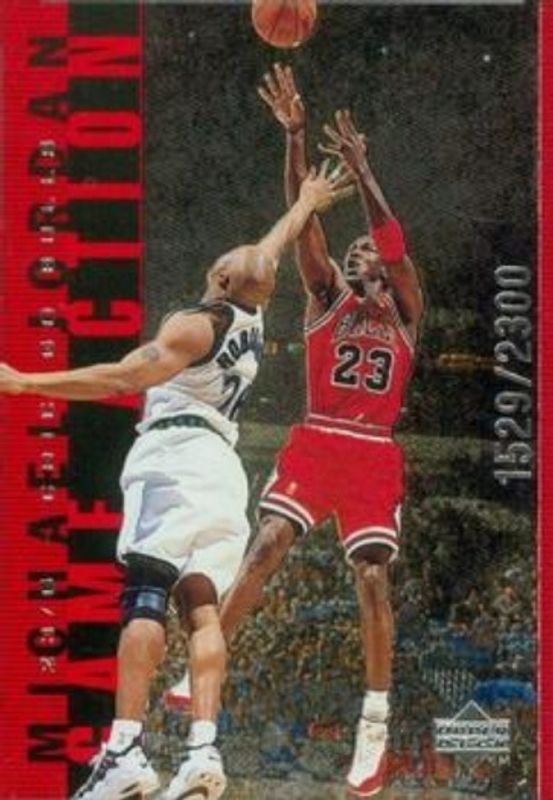 The Michael Jordan 1998 Upper Deck Michael Jordan Living Legend #G2 Game Action Red card is 1 of 284 Michael Jordan's card variations in the 1998 Upper Deck Michael Jordan Living Legend set being tracked by Sports Card Investor, including #99 Base, #14 Base, #140 Base, #141 Base, and #142 Base.