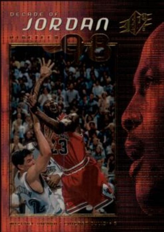 The Michael Jordan 1999 SPx #J9 Decade of Jordan card is 1 of 17 Michael Jordan's card variations in the 1999 SPx set being tracked by Sports Card Investor, including #J5 Decade of Jordan, #J8 Decade of Jordan, #J7 Decade of Jordan, #J6 Decade of Jordan, and #J1 Decade of Jordan.