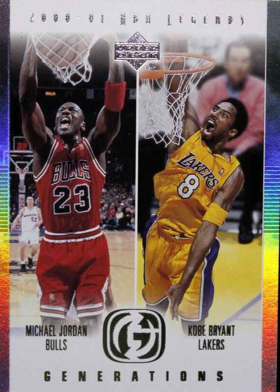 The Michael Jordan 2000 Upper Deck Legends #G1 Generations (w/Kobe Bryant) card in Raw condition has moved up $230 (+209%) in the last 30 days and was last sold for $340.00 .