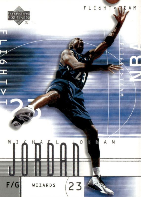The Michael Jordan 2001 Upper Deck Flight Team #1 Base card in Raw condition has moved down -$7.00 (-46.7%) in the last 30 days and was last sold for $8.00 .
