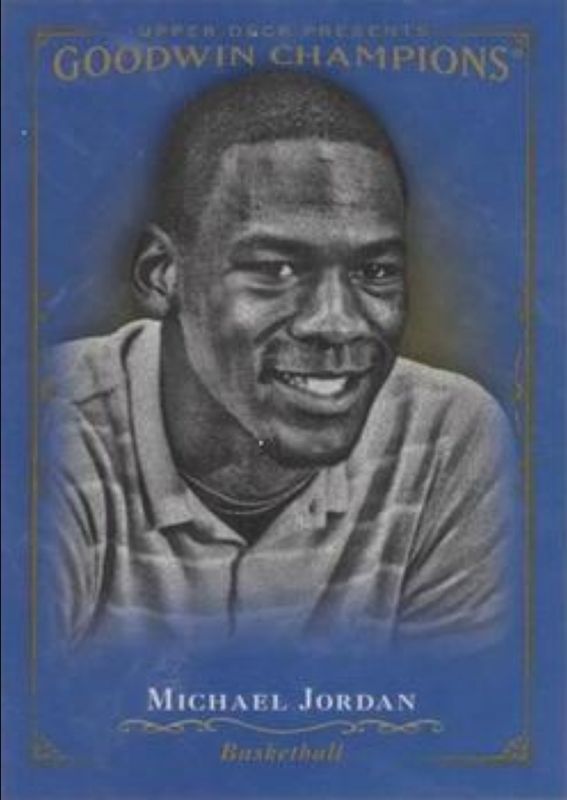 The Michael Jordan 2016 Upper Deck Goodwin Champions #104 Royal Blue card is 1 of 61 Michael Jordan's card variations in the 2016 Upper Deck Goodwin Champions set being tracked by Sports Card Investor, including #1 Base, #51 Base, #104 Base, Canvas Blank Back Minis, and #51 Canvas Minis.