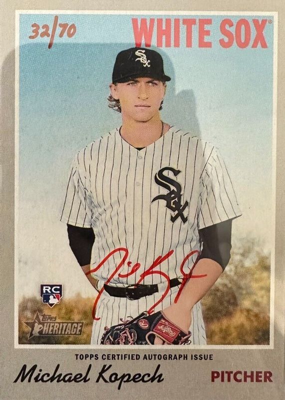 This card is 1 of 2 Michael Kopech's card variations in the 2019 Topps Heritage set being tracked by Sports Card Investor, including Real One Autographs.