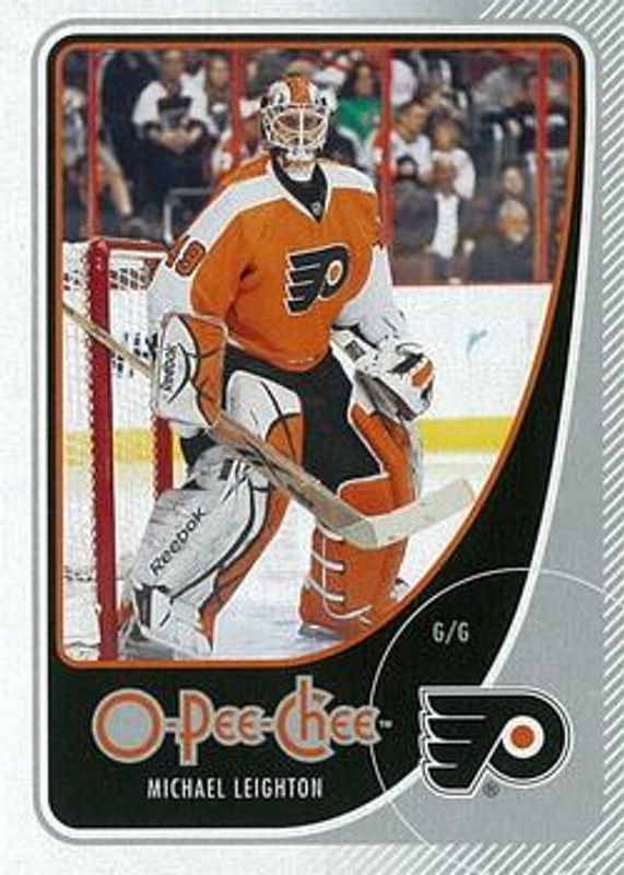 The Michael Leighton 2010 O-Pee-Chee #55 Base card is 1 of 6 Michael Leighton's card variations in the 2010 O-Pee-Chee set being tracked by Sports Card Investor, including Retro, Retro Blank Back, Retro Rainbow, Retro Black Rainbow /100, and Winter Classic.