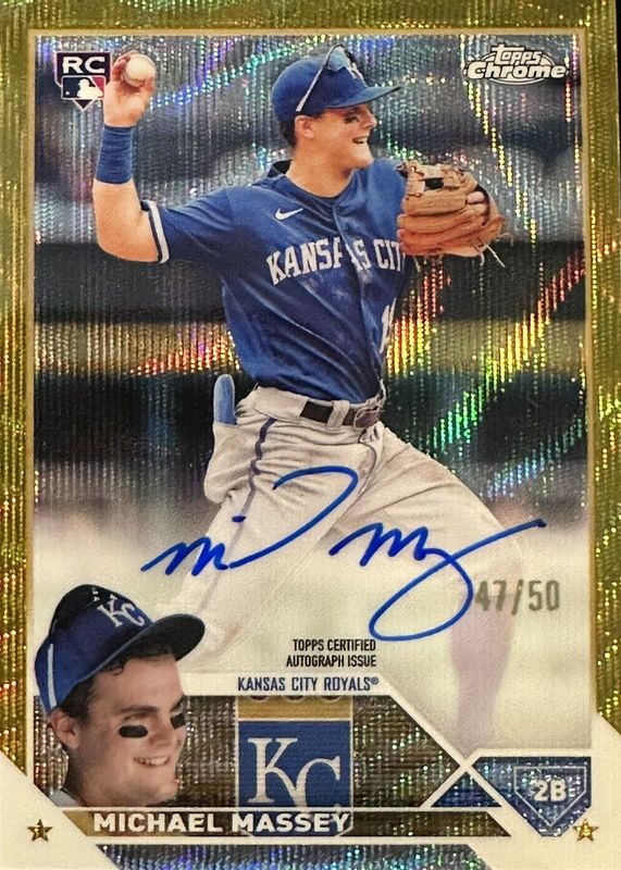 Best Prices Available For Sale of Michael Massey (Royals) 2023 Topps Chrome #RA-MM Rookie Autographs - Gold Wave Refractor /50