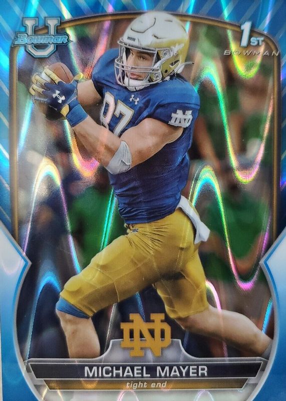 Michael Mayer 2022 Bowman Chrome University #41 Blue RayWave Refractor /199 1st