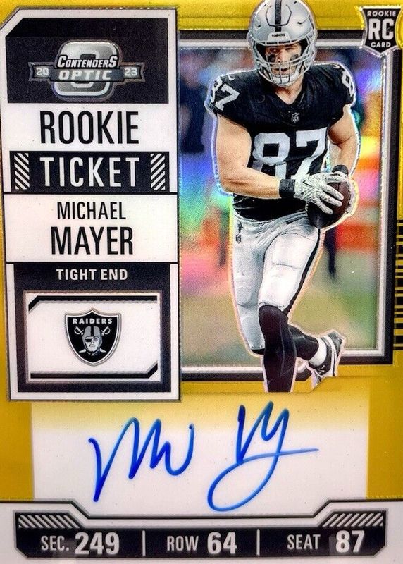 2023 Contenders Optic Michael Mayer /10 Gold Rookie Ticket Auto On Card Raiders