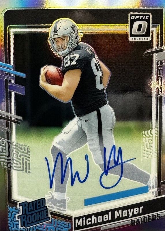 2023 Donruss Optic Michael Mayer Rated Rookie Silver Holo Auto /75 #260 Raider