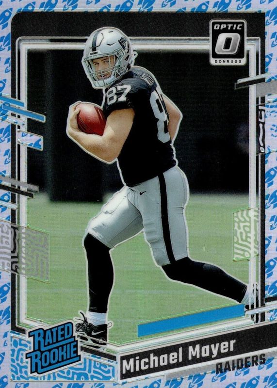 This card is 1 of 54 Michael Mayer's card variations in the 2023 Optic set being tracked by Sports Card Investor, including Base, Blue Hyper, Blue Scope, Green Hyper, and Green Velocity.