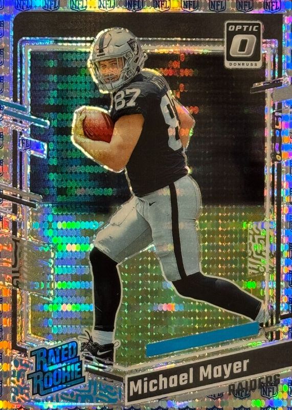 This card is 1 of 54 Michael Mayer's card variations in the 2023 Optic set being tracked by Sports Card Investor, including Base, Blue Hyper, Blue Scope, Green Hyper, and Green Velocity.