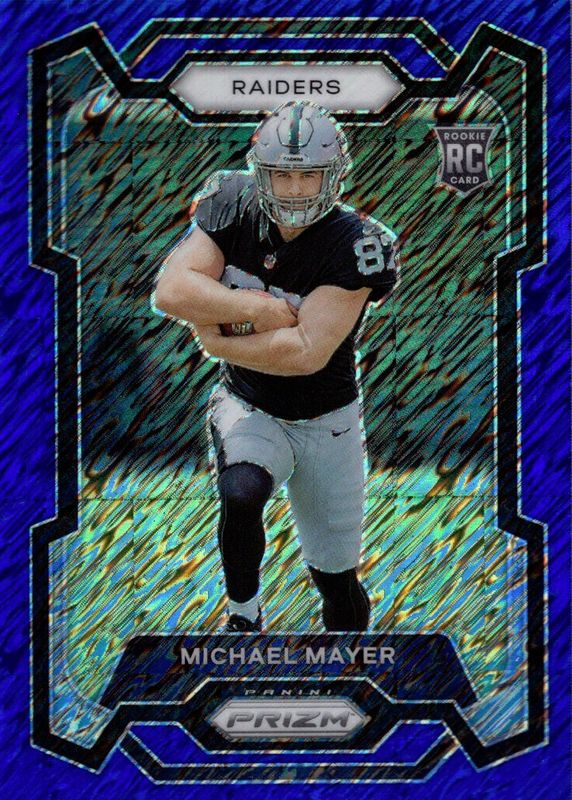 2023 Michael Mayer Panini Prizm #361 Prizms Blue Shimmer 24/25 RC Raiders SP
