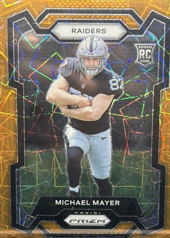 2023 Panini Prizm Michael Mayer Orange Cracked Ice Rookie Holo #361 Raiders RC