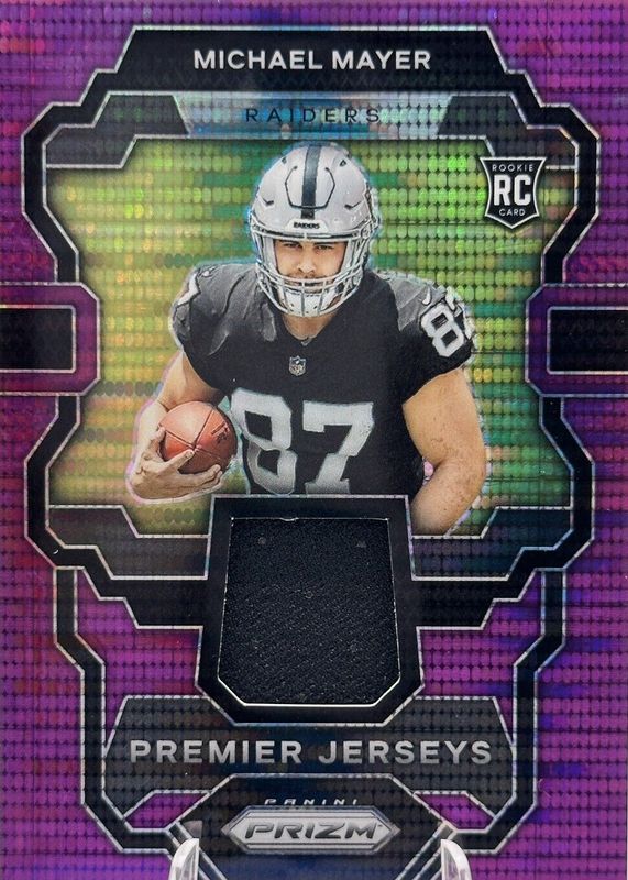 2023 Panini Prizm Michael Mayer Patch Purple Pulsar Premier Jerseys RC Raiders