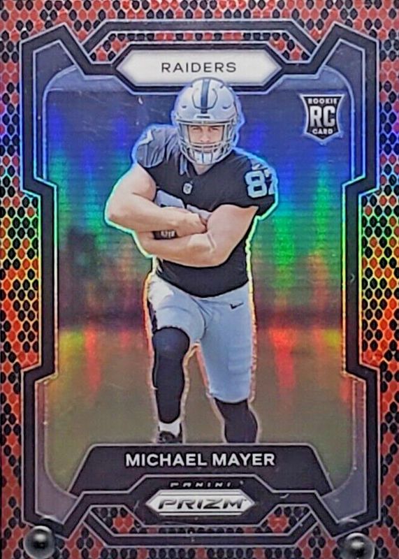 The Michael Mayer 2023 Prizm #361 Snakeskin /(SSP) Rookie card in Raw condition has not changed in price in the last 30 days and was last sold for $66.00 .