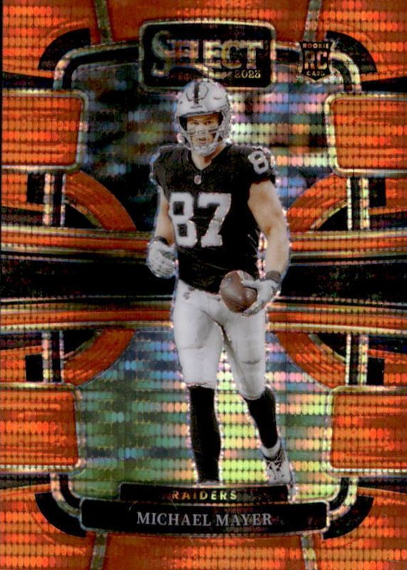 The Michael Mayer 2023 Select #57 Concourse Neon Orange Pulsar /7 Rookie card in Raw condition has not changed in price in the last 30 days and was last sold for $14.50 .