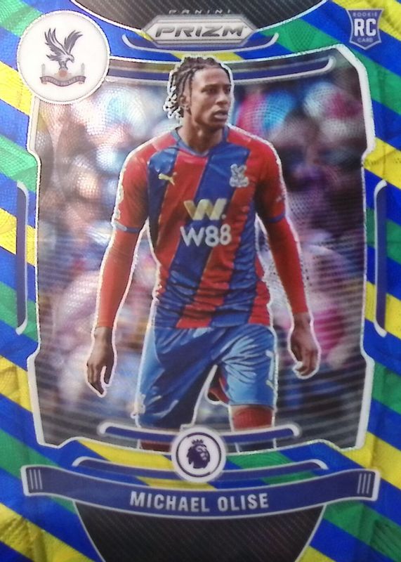 The Michael Olise 2021 Prizm Premier League #296 Choice Blue Yellow Green Rookie card in Raw condition has not changed in price in the last 30 days and was last sold for $6.95 .