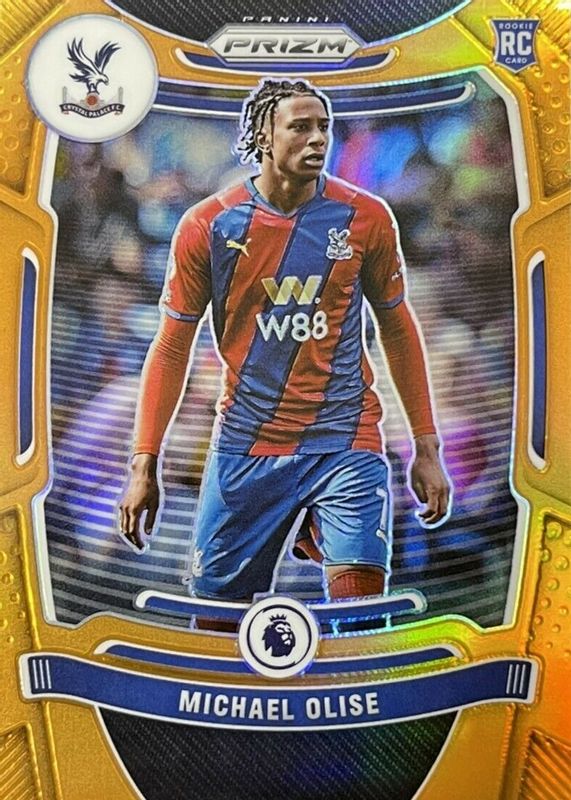 The Michael Olise 2021 Prizm Premier League #296 Orange /25 Rookie card in Raw condition has not changed in price in the last 30 days and was last sold for $110.50 .