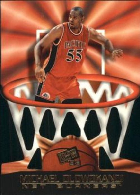 The Michael Olowokandi 1998 Press Pass Flagship #NB-6 Net Burners Rookie card is 1 of 11 Michael Olowokandi's card variations in the 1998 Press Pass Flagship set being tracked by Sports Card Investor, including Base, In The Zone, Red, Reflectors, and Torquers.