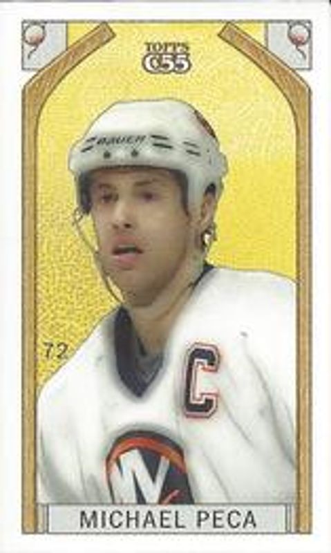 The Michael Peca 2003 Topps C55 #72 Minis Brooklyn Back card is 1 of 10 Michael Peca's card variations in the 2003 Topps C55 set being tracked by Sports Card Investor, including Base, Minis, Minis America Back, Minis America Back Red, and Minis Bazooka Back.