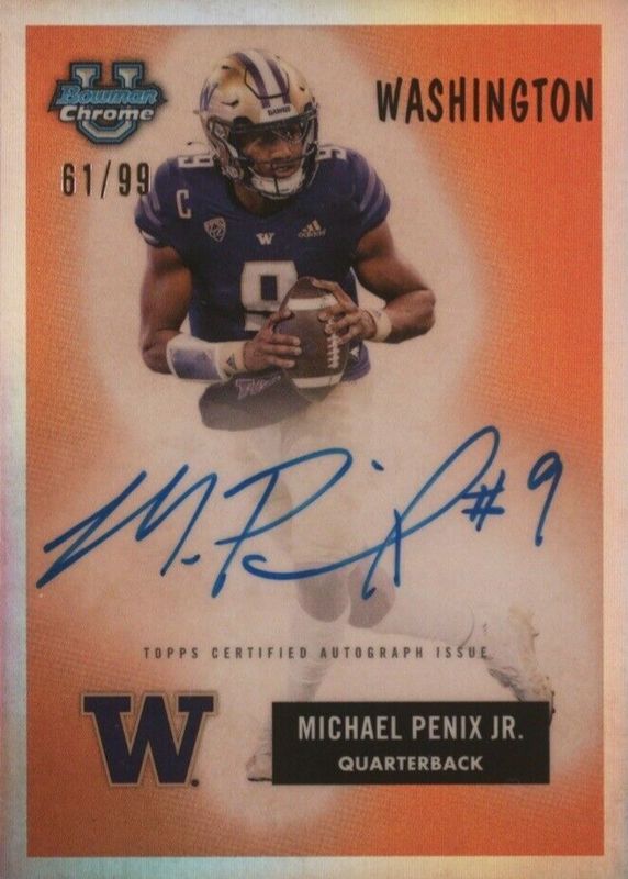 Best Prices Available For Sale of Michael Penix Jr. 2023 Bowman Chrome University #55B-MP 1955 Bowman Football Autographs /99