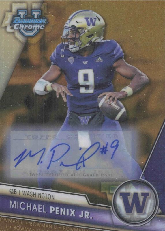 2023 Bowman Chrome U #141 Michael Penix Jr. Gold Refractor Auto 9/50. Jersey#