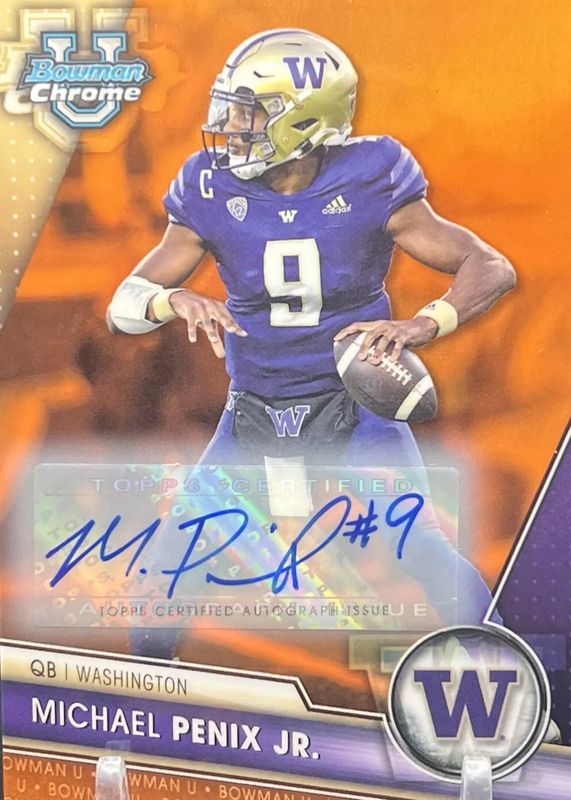 Auctions Ending Soon for Michael Penix Jr. 2023 Bowman Chrome University #141 Prospect Auto - Orange Refractor /25 RAW