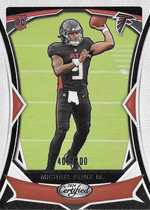 The Michael Penix Jr. 2024 Certified #106 Base Rookie /400 card in Raw condition has moved up $13.70 (+601%) in the last 30 days and was last sold for $15.98 .