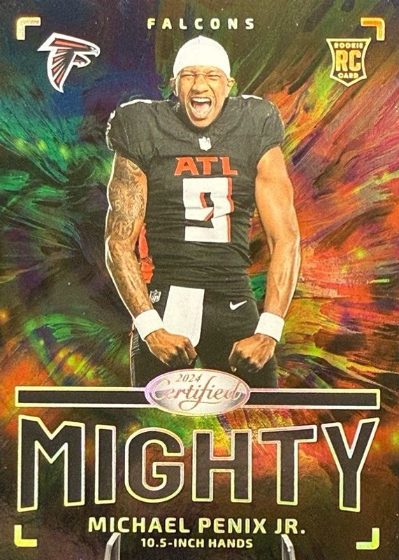 The Michael Penix Jr. 2024 Certified #TM-MPJ The Mighty /(SSP) Rookie card in Raw condition has not changed in price in the last 30 days and was last sold for $25.00 .