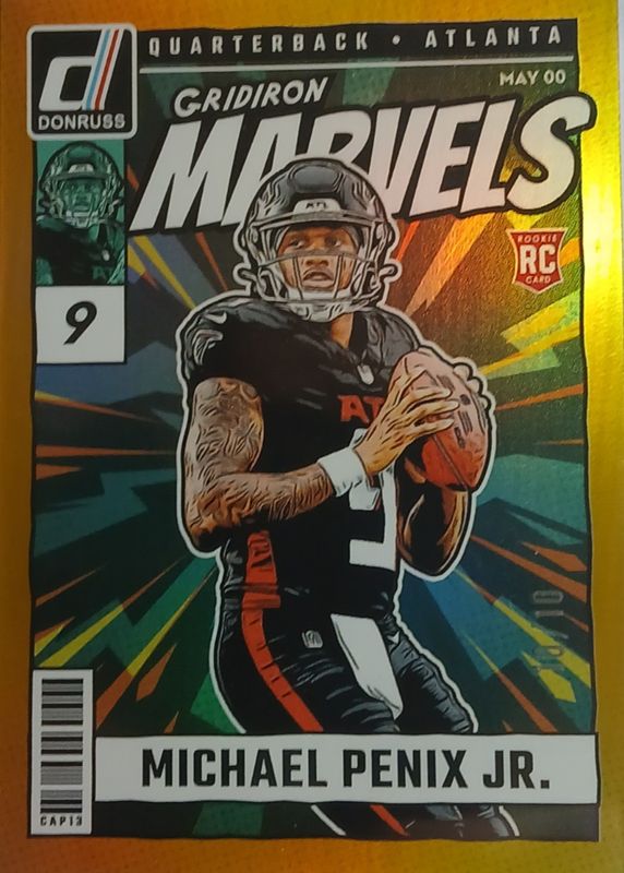 2024 DONRUSS MICHAEL PENIX JR SSP 10/10 GOLD GRIDIRON MARVELS RC ROOKIE CASE HIT