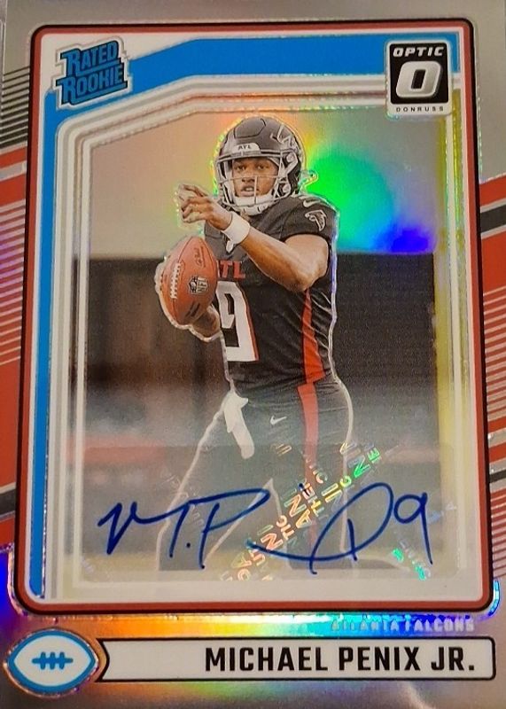 The Michael Penix Jr. 2024 Donruss #308 Optic Rated Rookie Preview Autographs card in Raw condition has not changed in price in the last 30 days and was last sold for $115.50 .