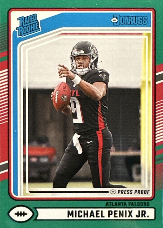 MICHAEL PENIX JR. 2024 DONRUSS RATED ROOKIE GREEN PRESS PROOF RC Q3387