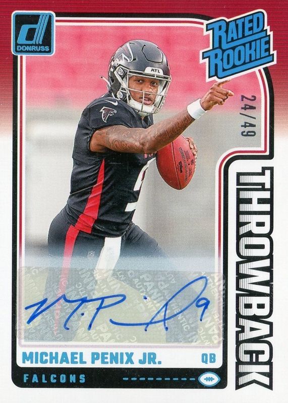 2024 Panini Donruss Michael Penix Jr. Rated Rookie Throwback Auto #/49 Falcons
