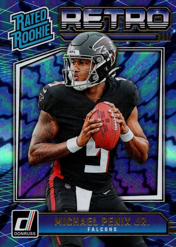 The Michael Penix Jr. 2024 Donruss #7 Rated Rookies Retro card in Raw condition has moved up $0.75 (+50.0%) in the last 30 days and was last sold for $2.25 .