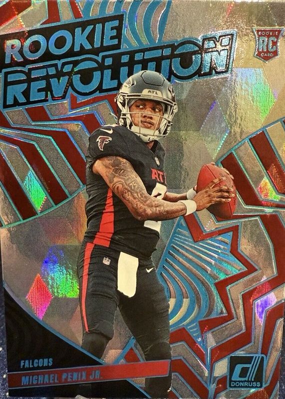 The Michael Penix Jr. 2024 Donruss #6 Rookie Revolution - Cubic /50 card in Raw condition has not changed in price in the last 30 days and was last sold for $35.00 .