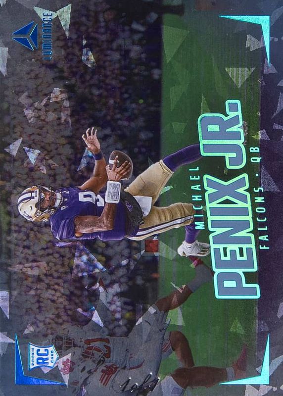 This card is 1 of 26 Michael Penix Jr.'s card variations in the 2024 Luminance set being tracked by Sports Card Investor, including Horizontal Rookies, Vertical Rookies, Horizontal Rookies - Gold /299, Vertical Rookies - Gold /299, and Horizontal Rookies - Purple /175.