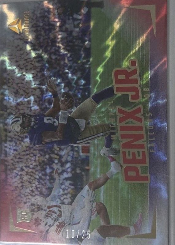 The Michael Penix Jr. 2024 Luminance #179 Horizontal Rookies - Red /25 card in Raw condition has not changed in price in the last 30 days and was last sold for $55.00 .