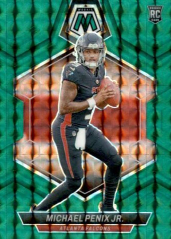 The Michael Penix Jr. 2024 Mosaic #308 Green Rookie card in Raw condition has moved up $1.25 (+100%) in the last 30 days and was last sold for $2.50 .