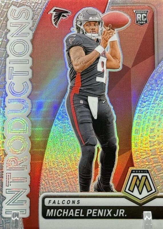The Michael Penix Jr. 2024 Mosaic #6 Introductions - Silver Rookie card in Raw condition has not changed in price in the last 30 days and was last sold for $10.00 .